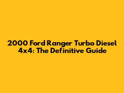 Alright, gearheads! Let's dive deep into the 2000 Ford Ranger Turbo Diesel 4x4. This truck is a legend, a workhorse, and a head-turner all rolled into one. If you're lucky enough to own one, or you're thinking about snagging one, you're in for a treat. This guide will walk you through everything you need to know about this classic pickup, from its rugged capabilities to its common issues and how to keep it running strong. We're going to cover everything. So, buckle up! This is going to be a fun ride!