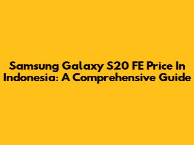Samsung Galaxy S20 FE Price In Indonesia: A Comprehensive Guide