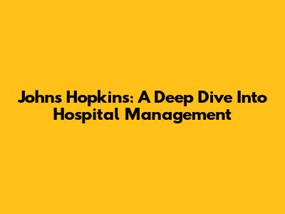 Johns Hopkins: A Deep Dive Into Hospital Management