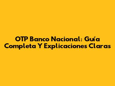 OTP Banco Nacional: Guía Completa Y Explicaciones Claras