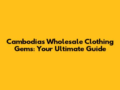 Cambodia's Wholesale Clothing Gems: Your Ultimate Guide