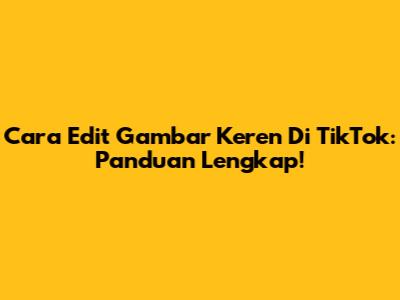 Cara Edit Gambar Keren Di TikTok: Panduan Lengkap!