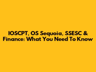 IOSCPT, OS Sequoia, SSESC & Finance: What You Need To Know