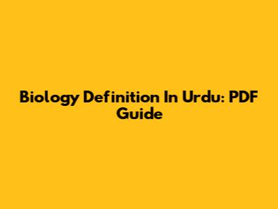Biology Definition In Urdu: PDF Guide