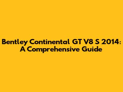 Bentley Continental GT V8 S 2014: A Comprehensive Guide