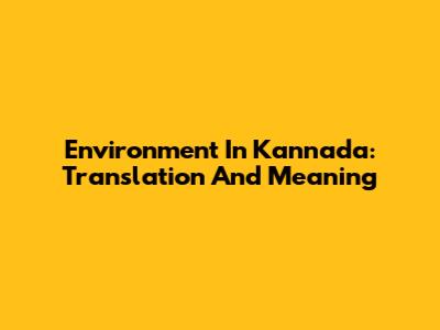 Environment In Kannada: Translation And Meaning