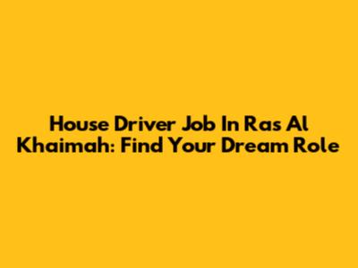 House Driver Job In Ras Al Khaimah: Find Your Dream Role