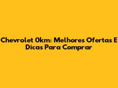 Chevrolet 0km: Melhores Ofertas E Dicas Para Comprar