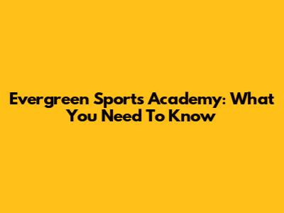 Evergreen Sports Academy: What You Need To Know