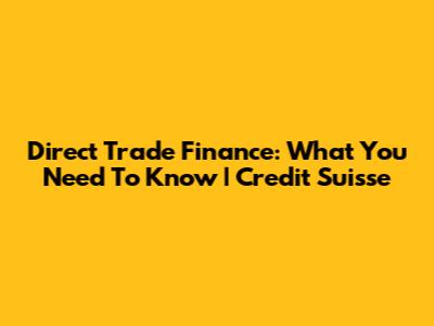 Direct Trade Finance: What You Need To Know | Credit Suisse