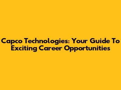 Capco Technologies: Your Guide To Exciting Career Opportunities