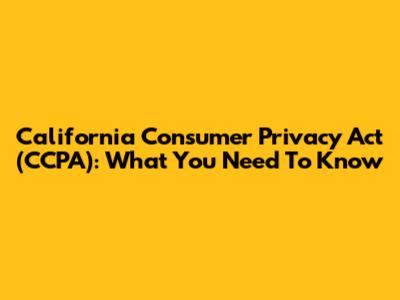 California Consumer Privacy Act (CCPA): What You Need To Know