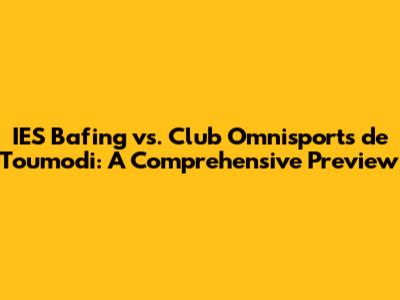 Hey guys! Today, we're diving deep into an exciting matchup: IES Bafing versus Club Omnisports de Toumodi. This isn't just another game; it's a clash of titans (well, maybe not titans, but definitely two determined teams!). We’re going to break down everything you need to know, from their current form to key players, and even try to predict who will come out on top. So, grab your snacks, settle in, and let’s get started!