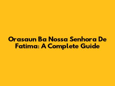 Orasaun Ba Nossa Senhora De Fatima: A Complete Guide