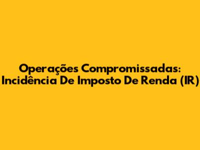 Operações Compromissadas: Incidência De Imposto De Renda (IR)