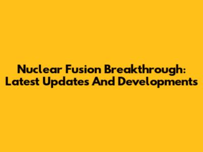 Nuclear Fusion Breakthrough: Latest Updates And Developments