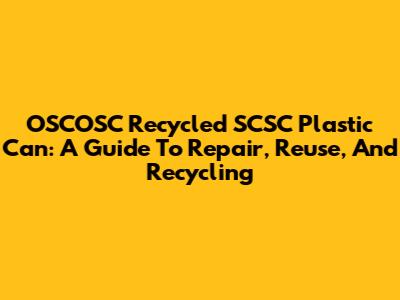 OSCOSC Recycled SCSC Plastic Can: A Guide To Repair, Reuse, And Recycling