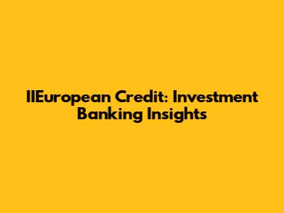 IIEuropean Credit: Investment Banking Insights