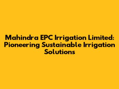 Let's dive into the world of Mahindra EPC Irrigation Limited, a key player in revolutionizing the irrigation sector. Sustainable agriculture and efficient water management are more critical than ever, and Mahindra EPC Irrigation is at the forefront, providing innovative solutions to meet these challenges. This article explores the company's history, products, services, and its impact on the agricultural landscape. We'll also examine how it leverages technology to enhance irrigation efficiency and promote sustainable farming practices. So, buckle up as we unpack everything you need to know about Mahindra EPC Irrigation Limited.