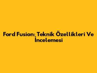 Ford Fusion: Teknik Özellikleri Ve İncelemesi