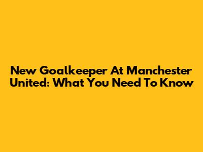 New Goalkeeper At Manchester United: What You Need To Know