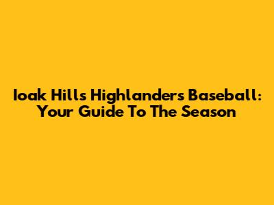 Ioak Hills Highlanders Baseball: Your Guide To The Season