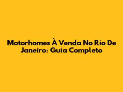 Motorhomes À Venda No Rio De Janeiro: Guia Completo
