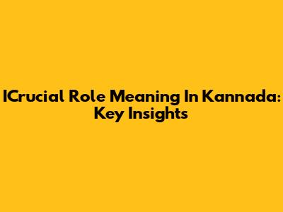 ICrucial Role Meaning In Kannada: Key Insights