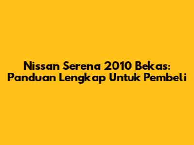 Nissan Serena 2010 Bekas: Panduan Lengkap Untuk Pembeli