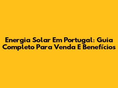 Energia Solar Em Portugal: Guia Completo Para Venda E Benefícios