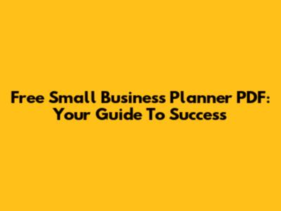 Free Small Business Planner PDF: Your Guide To Success