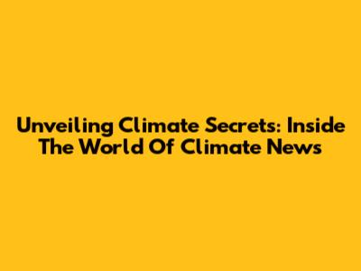 Unveiling Climate Secrets: Inside The World Of Climate News