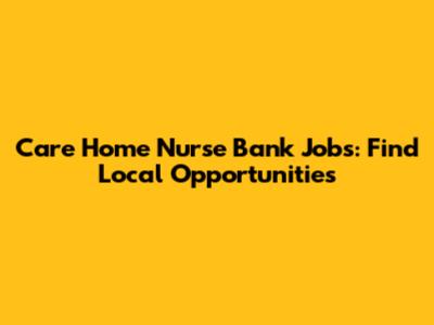 Care Home Nurse Bank Jobs: Find Local Opportunities