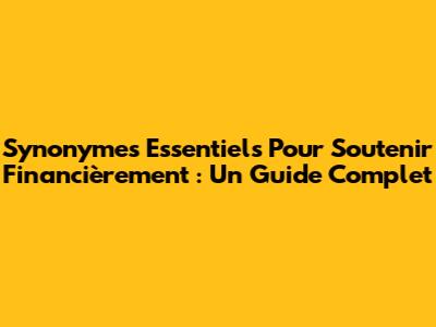 Synonymes Essentiels Pour Soutenir Financièrement : Un Guide Complet