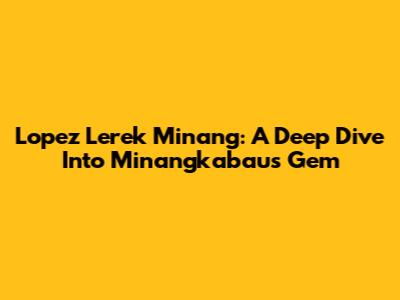 Lopez Lerek Minang: A Deep Dive Into Minangkabau's Gem
