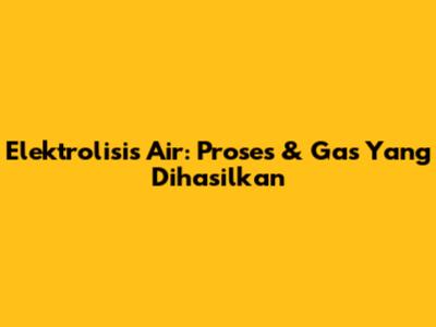 Elektrolisis Air: Proses & Gas Yang Dihasilkan