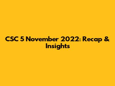 CSC 5 November 2022: Recap & Insights