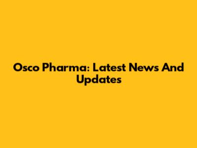 Osco Pharma: Latest News And Updates