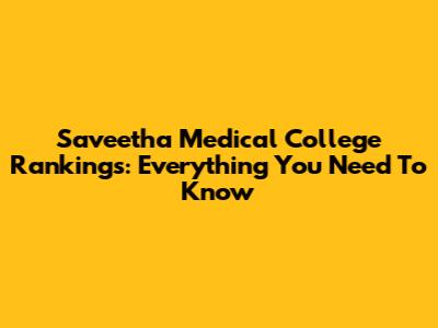 Saveetha Medical College Rankings: Everything You Need To Know